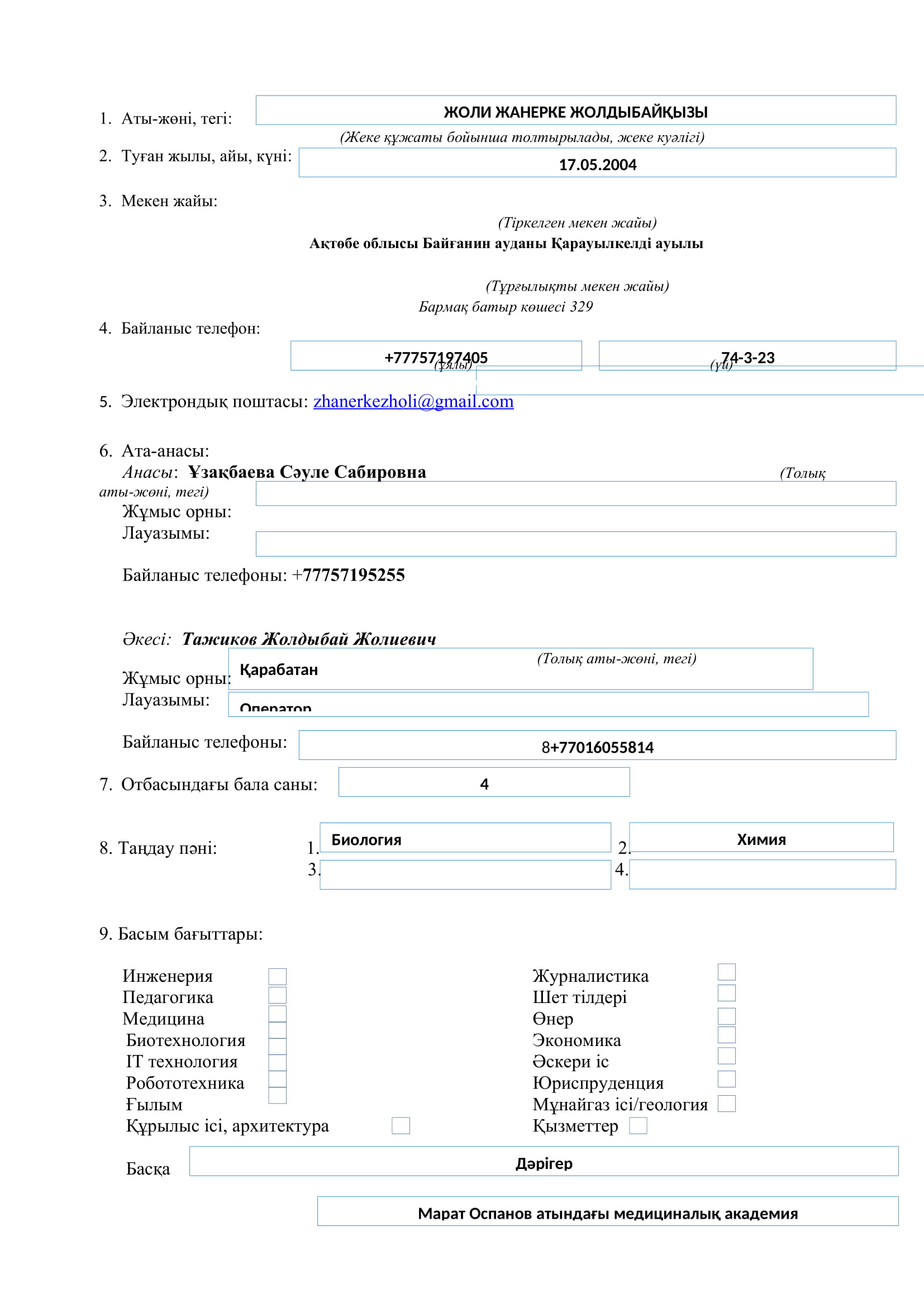 Жоли Жанерке Жолдыбайқызы